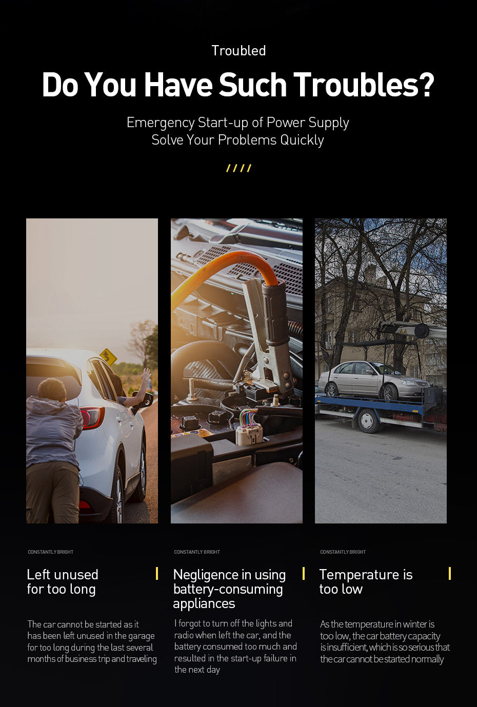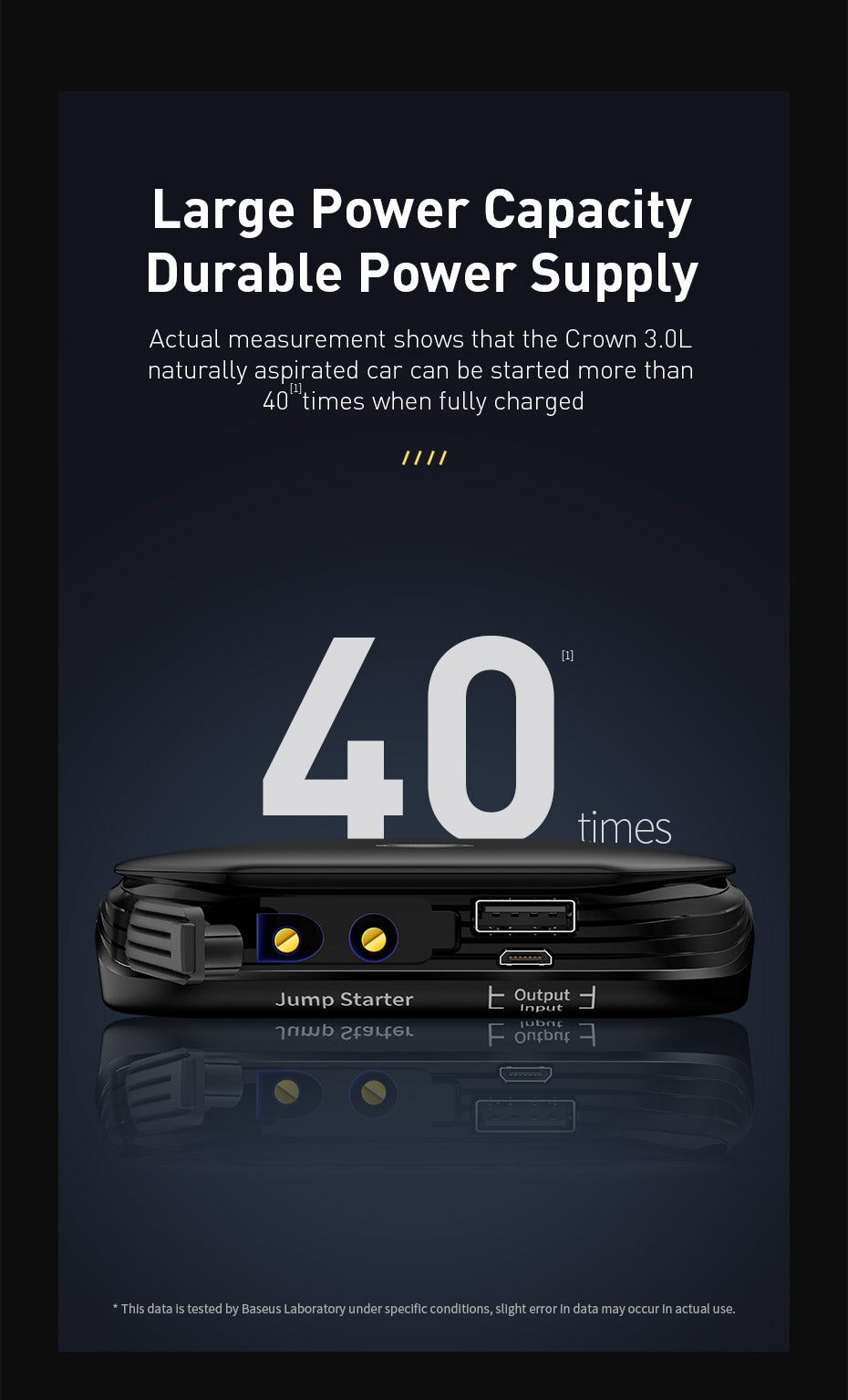 Paquetes de baterías de la serie 4 actualizados, más de 2 veces más fuertes que otros. Capacidad de potencia de 8000 mAh, el automóvil Crown 3.0L naturalmente se puede iniciar más de 4 veces cuando está completamente cargado
