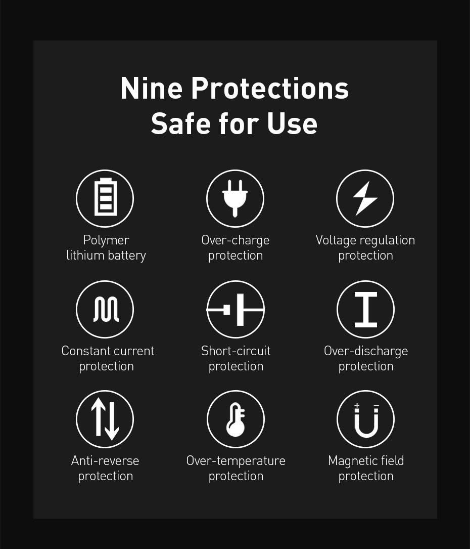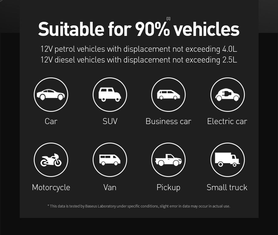 Arranque fácil incluso a baja temperatura de -40 ℃. Fuente de alimentación de 5 V/2,4 A, puede funcionar como banco de energía para productos electrónicos.