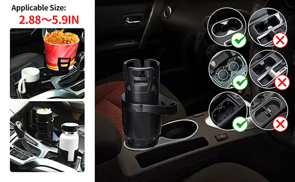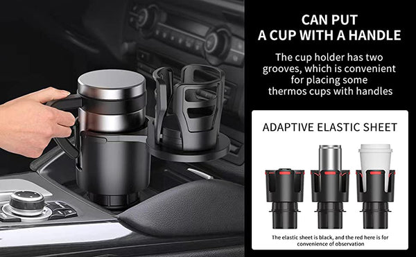 New Upgraded Cup Holder Expander for Car 2 In 1 Multifunctional Car Cup Holder Extender Adapter with Adjustable Base Compatible with Hydro Flask, Yeti, Nalgene, 32/40 Oz Large Bottles Drinks Mugs - KinglyDay