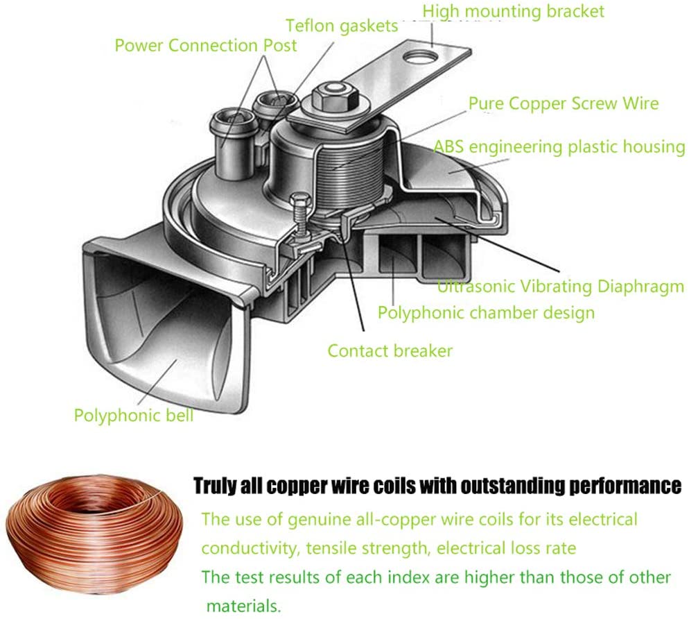Lors de l'installation de deux klaxons, les fils de connexion doivent être connectés en parallèle