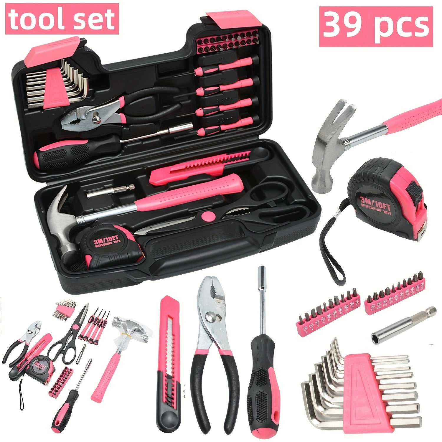 39/13pcs Household DIY Tool Kit for Women - Compact Mini Tool Box Set for Home, Office, and Vehicle Repairs